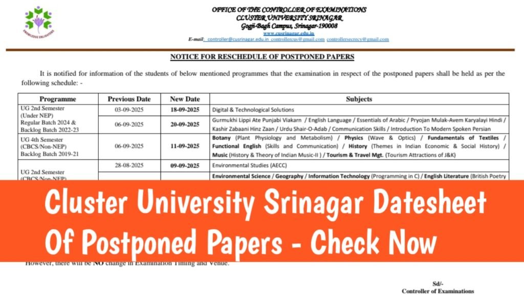 Controller of Examination at Cluster University Srinagar has issued or published a fresh notification for all the students regarding the